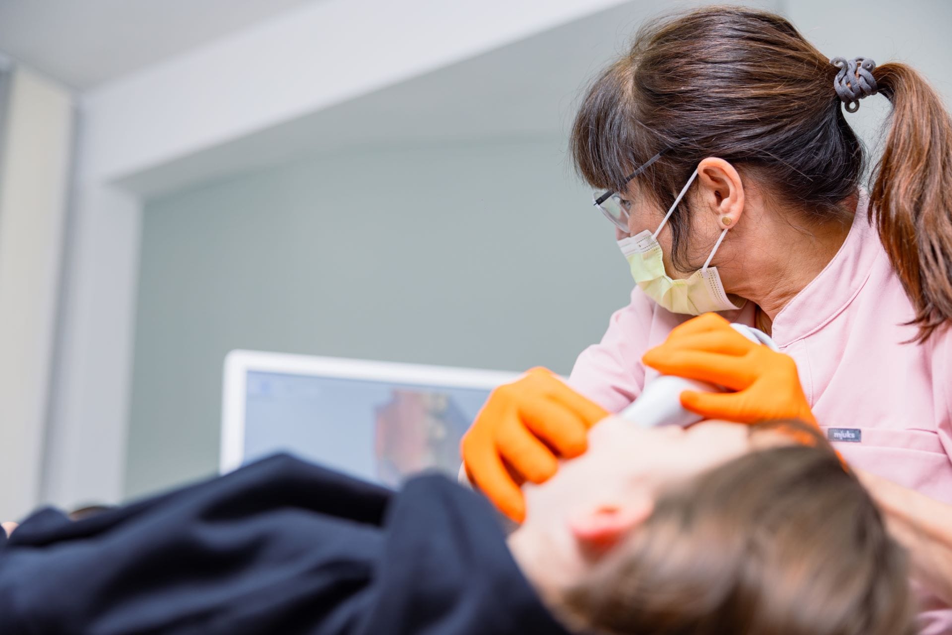 Für Ihre Behandlung setzen wir auf eine Kombination aus Innovation und Präzision. Mit unserem Intraoralscanner erstellen wir hochpräzise digitale Abdrücke – ganz ohne unangenehme Abdruckmasse. Direkt am Bildschirm können wir gemeinsam den aktuellen Zahnstatus betrachten und Ihnen anschaulich erklären, wie die Behandlung ablaufen wird.