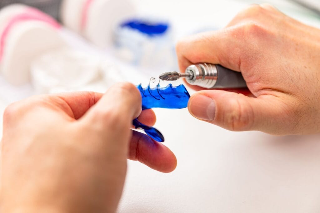 Auf Basis dieser digitalen Daten fertigen wir mit 3D-Druck präzise Modelle an, die als Grundlage für Ihre individuelle Behandlung dienen. In unserem eigenen zahntechnischen Labor entstehen daraus maßgeschneiderte herausnehmbare Zahnspangen und individuell angepasste Schienen